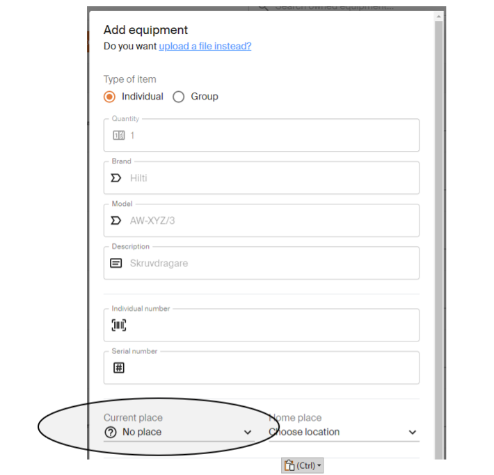 Detta kan göras både när ny utrustning skapas och när existerande utrustning flyttas.